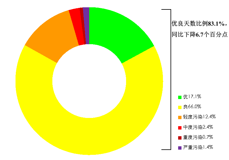 4月,全國339個地級及以上城市平均空氣質量優(yōu)良天數比例為83.1%,同比下降6.7個百分點;平均重度及以上污染天數比例為2.1%,同比上升0.9個百分點。由沙塵天氣導致的平均超標天數比例為9.7%,其中重度及以上污染天數比例為2.1%。